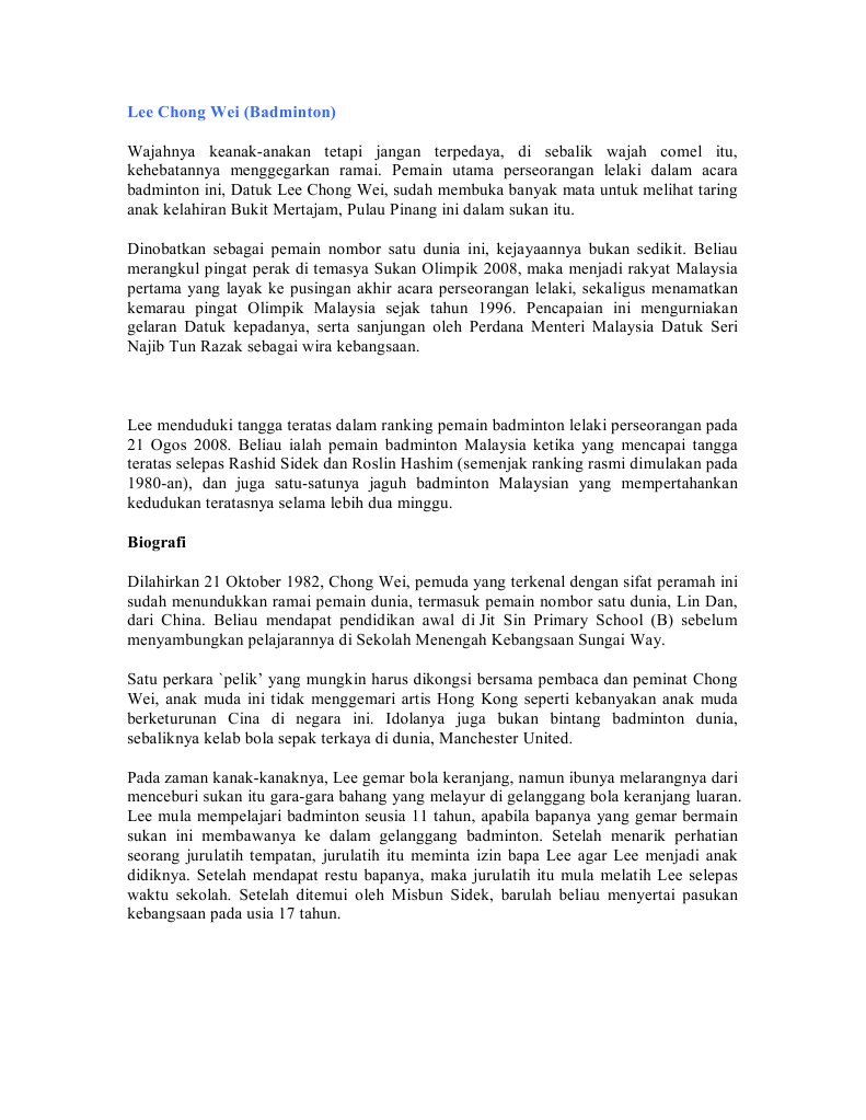 Biografi lee chong wei. Sumbangan lee chong wei kepada malaysia dalam bidang sukan badminton terbuka malaysia 2004. Age 37 21 10 1982. Career wins 715 ms md. Terbuka china taipei 2004.