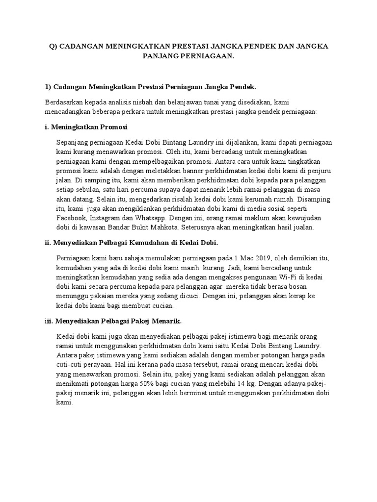 Cadangan jangka pendek perniagaan. 82 84 82 menganggap dokumen ini bermanfaat 84 suara 85k tayangan 2 halaman. Cadangan untuk meningkatkan prestasi jangka panjang perniagaan. Kerana kita membuka perniagaan bukan untuk tempoh sebulan sahaja. 3 promosi dan pengiklanan ditambahkan untuk.