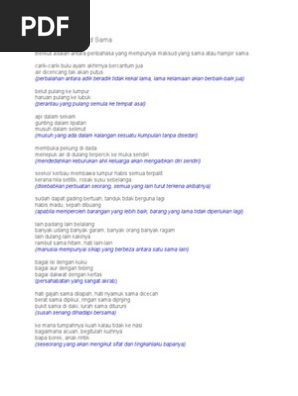 Gar gar kata helegar rusuk juga yang menahannya. Carik carik bulu ayam akhirnya bercantum jua air dicencang tak akan putus. Sesuatu seperti pingat atau piala kemenangan yang berpindah milik akhirnya pulang kepada asal kena pada tempatnya pulang ke tempat asal. Nyiur juga yang binasa 3.