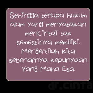 Cinta tak semestinya memiliki. Kalau tak memilikinya bukan cinta namanya kita tak boleh hanya bercinta dengan ilusi. Tak perlu ada hasad dengki atau mendoakan si dia menderita tak bahagia atau semua yang buruk. Selasa 8 september 2020 19 34. Itulah yg pernah terjd pd saya cintailah org yg cintakan kita.