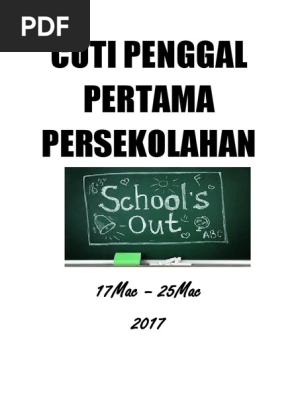 Cuti pertengahan penggal pertama. 18 march 2017 hingga 26 march 2017. Cuti umum cuti kelepasan am persekutuan cuti kelepasan am negeri dan cuti persekolahan malaysia bagi tahun 2017. 27 may 2017 hingga 11 june 2017.