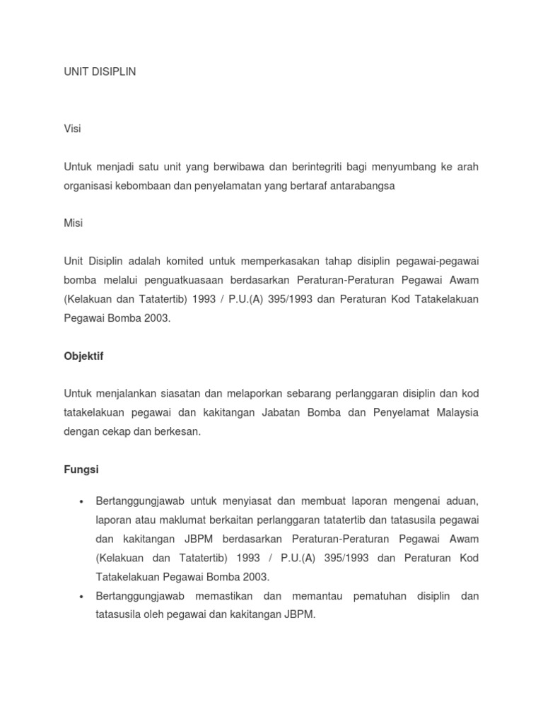 Fungsi jabatan bomba dan penyelamat malaysia. Dari segi kualiti jabatan bertekad untuk lebih cemerlang melalui inovasi dan kualiti m s iso 9001 2015. Jabatan bomba dan penyelamat malaysia jbpm mempunyai objektif untuk memberi khidmat pencegahan dan pemadaman kebakaran menguatkuasakan undang undang yang berkaitan dengan aspek keselamatan dan memadam kebakaran serta menyediakan khidmat kemanusiaan yang cekap dan berkesan. Modul ini juga bertujuan untuk memperkenalkan dasar dan mekanisme dalam menentukan peranan dan tanggung jawab semua agensi terlibat ketika bencana melanda. Di malaysia fungsi fungsi bomba adalah tertakluk di bawah seksyen 5 1 2 akta perkhidmatan bomba 1988 akta 341 seperti berikut 2.