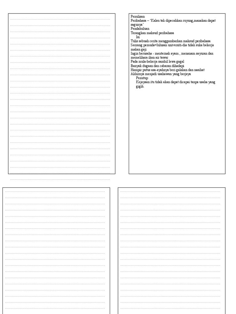 Cita cita tanpa usaha tidak akan tercapai. Peribahasa hari ni ialah kalau tak dipecahkan ruyung manakan dapat sagunya. Kalau tidak dipecahkan ruyung manakan dapat sagunya. Belakang parang pun kalau diasah nescaya tajam.