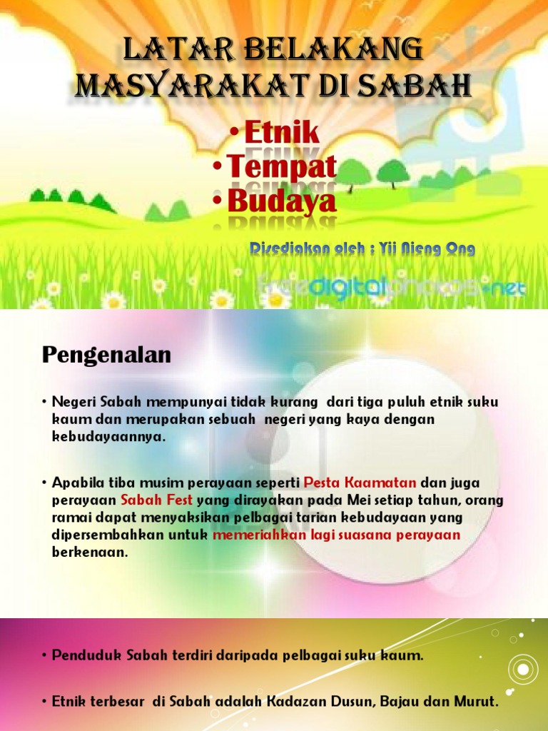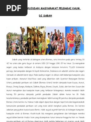 Kaum terbesar di sabah. Suku kaum dusun yang tinggal di pantai barat seperti penampang papar tuaran kiulu tamparuli tenghilan kota belud dan juga di lembah bukit di ranau tambunan dan keningau adalah petani tradisi yang menanam padi sawah dan huma. Rakyat dan sejarah sabahpenduduk sabah terdiri daripada 33 kumpulan pribumi yang berkomunikasi dalam lebih 50 bahasa dan 80 dialek etnik. Kaum murut ini merupakan suku etnik ketiga terbesar di sabah. Kumpulan etnik yang terbesar adalah suku kaum dusun yang merupakan satu pertiga dari penduduk sabah.