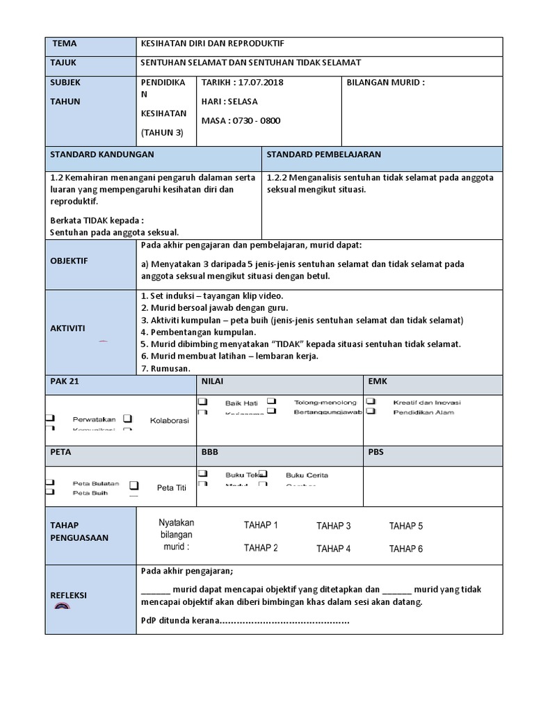 Lembaran kerja latihan sentuhan selamat dan tidak selamat. Lampiran guru contoh. Bahan bantuan pengajaran slaid gambar iklan youtube iklan animasi ajar jerit lescopaque avi langkah pengajaran 1. Ketrampilan diri 1 kreativiti 7 lembaran kerja 4 number 5 tema 39 worksheet 3 chit chat. Seorang murid menepuk punggung bahagian belakang seorang murid menerpa dan cuba memeluk dari belakang seorang murid lain.
