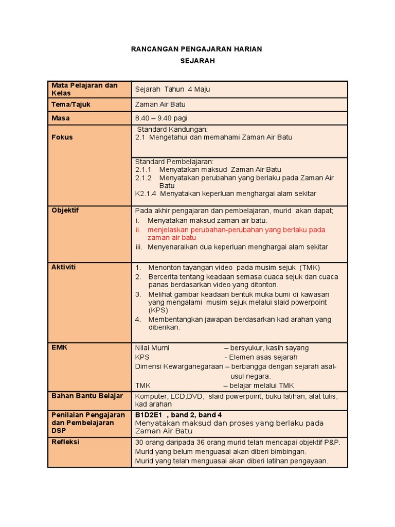 Rph sejarah tahun 4 rancangan pelajaran harian. Sejarah tahun 4 mawar. 1 pada zaman air batu kawasan daratan lebih luas daripada kawasan lautan dan sungai. Haiwan yang hidup pada zaman air batu 18000 tahun yang lalu sudah pupus gajah mamot harimau bertaring lengkung belum pupus bison sloth 4.