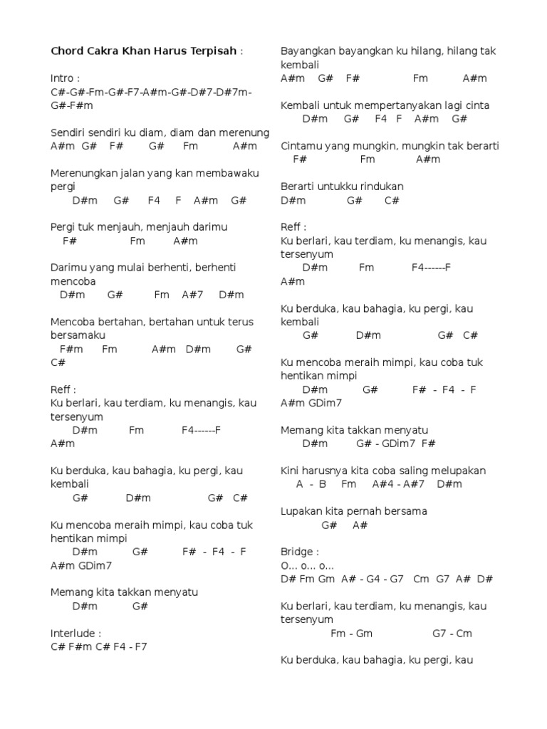 Dm kasih yang terpisah. F e am am puas aku utuskan surat cinta dm namun kau balas dengan derita g c mengapa tidak kesampaian e untuk aku milikimu am mengapa kita dm kasih yang terpisah g c bersatu cumalah hati g em dm c menangis sedih biarlah bm e ku temui di taman fantasi am. Mengapa kita kasih yang terpisah bersatu cumalah hati menangis sedih biarlah ku temui di taman fantasi. E ku temui di taman fantasi.