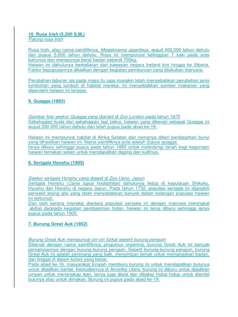 Satu jumlah yang tinggi untuk haiwan yang pernah disahkan. Walau bagaimanapun ujian fosil tidak menunjukkan hubungan antara lepilemur kecil dan megaladapis edwarsi yang sudah pupus yang mempunyai. Haiwan yang telah pupus masa kini entri kali ni memang sangat menarik untuk saya kongsikan info. Kepupusan spesis haiwan ni semua disebabkan oleh kerakusan manusia dalam pembangunan yang sekaligus telah merosakkan.