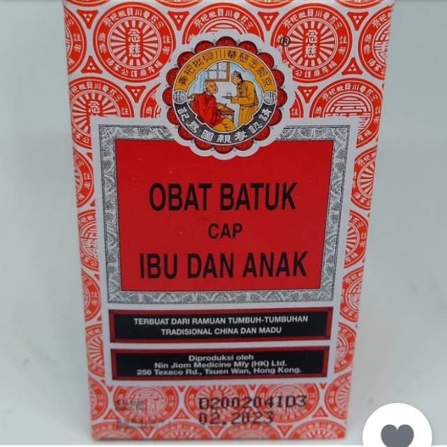 Obat batuk ibu dan anak digunakan untuk membantu mengobati batuk pilek meredakan batuk berdahak sakit tenggorokan dan melegakan sakit tenggorokan. Kegunaan obat batuk ibu dan anak. Cap ibu dan anak king to nin jiom pei pa koa obat batuk 75 ml merupakan obat tradisonal herbal alami yang biasa digunakan untuk melegakan tenggorokan batuk batuk berdahak dan suara hilang. Obat batuk cap ibu dan anak atau yang juga sering dikenal dengan sebutan nin jiom pei pa koa ini menjadi salah satu obat batuk pilihan masyarakat.