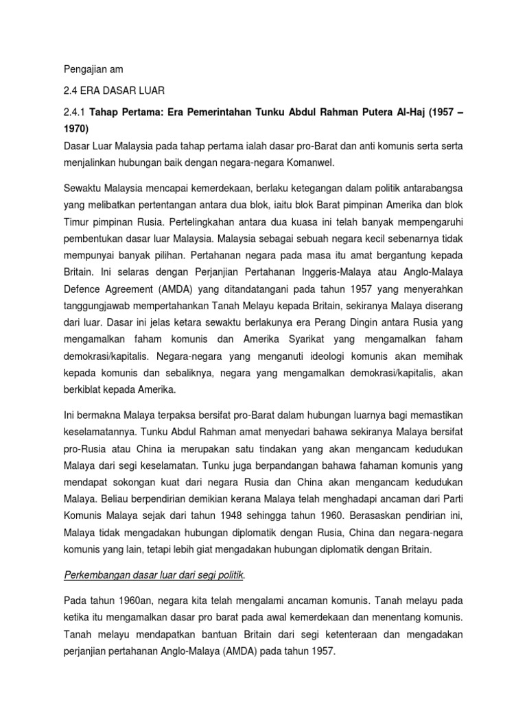 Objektif Dasar Luar Negara Malaysia Pengajian Am