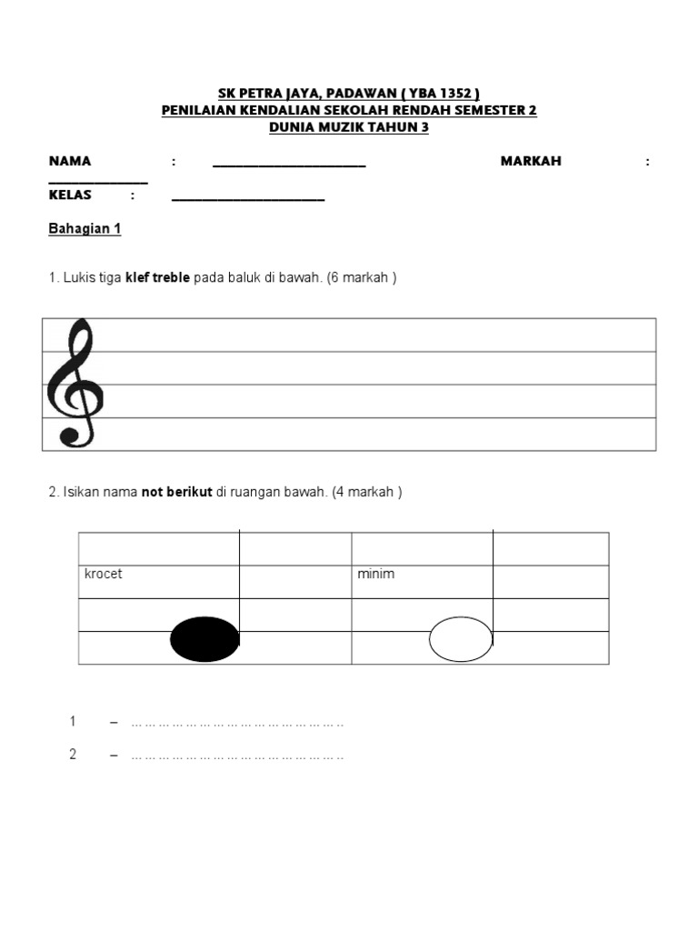 Jutaan terima kasih kepada pihak yang sanggup berkongsi. Sulit 1 nama kelas dunia muzik mei 2016 1 jam sekolah kebangsaan skarok lubok antu ujian pertengahan tahun 2016 dunia muzik tahun 3 60 minit jangan buka kertas soalan ini sehingga diberitahu arahan. Muzik tahun 3 muzik pendidikan muzik dunia muzik lagu muzik lagu tahun tiga muzik sekolah rendah. Kertas ujian akhir tahun 3 pendidikan moral.