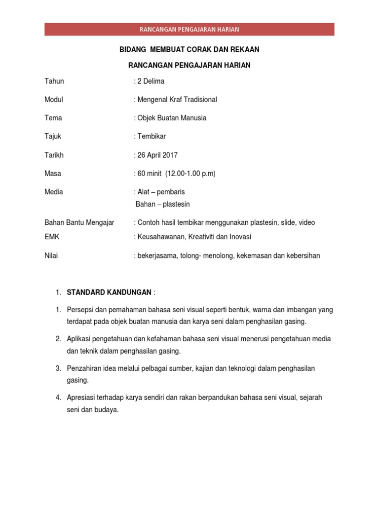 Mengenal kraf tradisional tema tajuk. Pada setiap awal persekolahan ataupun hujung tahun antara bahan persediaan utama yang akan disediakan oleh guru adalah rancangan pengajaran tahunan ataupun lebih dikenali sebagai rpt. Mengenal kraf tradisional gasing bidang. Rpt pendidikan kesenian komponen seni muzik tahun 2 by cg zia.