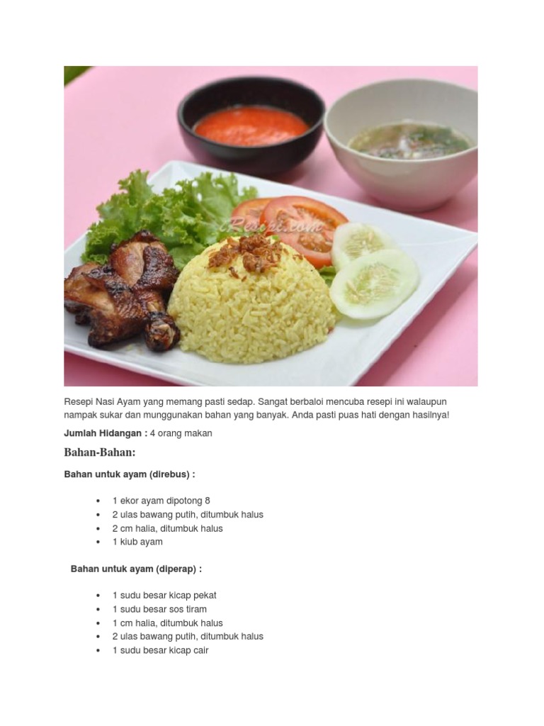 Resepi nasi ayam yang memang pasti sedap dan sangat sesuai dihidangkan untuk majlis majlis tertentu. Tengok nota di bahagian bawah sekali. Bacaan lebih lanjut. Jom belajar cara membuat cara memasak dan download pelbagai resepi yang mudah simple ringkas dan sedap di sini.