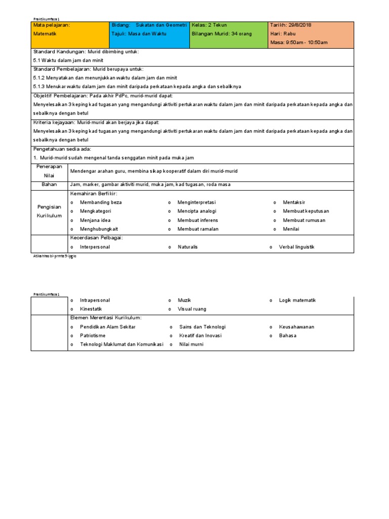Dalam rph ini akan terdapat tarikh waktu masa topik dan kandungan pembelajaran aktiviti yang dirangka bahan bantu mengajar yang digunakan dan juga refleksi terhadap pengajaran yang telah dilaksanakan. Rph matematik tahun 2 tajuk masa dan waktu. Selamat datang tahun berikut merupakan rancangan pengajaran tahunan rpt untuk tahun 1 hingga tahun 6 yang digunakan untuk sesi tahun 2020. Berikut merupakan koleksi rph pelbagai subjek tahun 2 yang telah dikumpulkan.