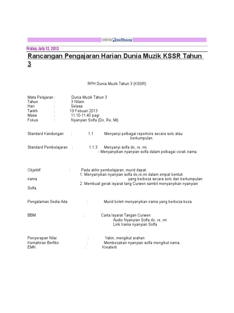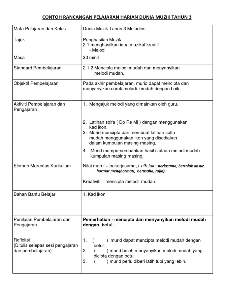 Rph pendidikan muzik tahun 3. Rancangan pengajaran harian dunia muzik kssr tahun 3. February 10 2020 at 10 13 am assalam saya nak sk muzik tahun dua. Rancangan pengajaran harian dunia muzik kssr tahun 3.