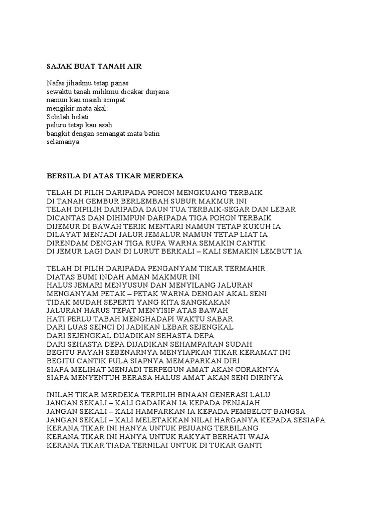 Tapi tanah kami sudah kerecikan api. Sajak sajak patriotik karya penyajak tanahair. Oleh itu semua pihak perlulah berganding bahu dan memainkan peranan masing masing agar semangat patriotik dapat dipupuk dan disuburkan dalam kalangan masyarakat. Akan tertegak bertapak dalam kebebasan cinta antara kita wahyu dari tuhan.