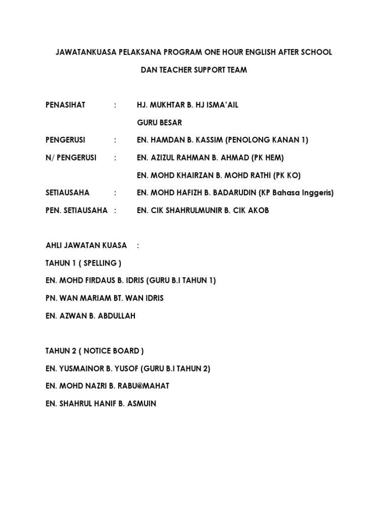 Senarai ahli jawatankuasa in english. Scouts deputy exco accompanied special task. Contextual translation of ahli jawatankuasa tugas tugas khas into english. Contextual translation of senarai ahli jawatankuasa into english. Jawatankuasa keselamatan dan kesihatan pekerjaan in english.