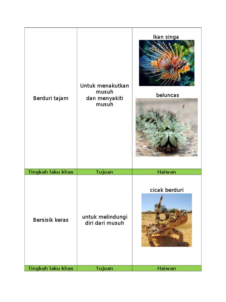 Tingkah laku khas haiwan. Haiwan mempunyai ciri ciri dan kelakuan khas bagi melindungi dirinya daripada dimakan oleh haiwan lain atau diancam oleh manusia. Haiwan mempunyai ciri ciri khas dan tingkah laku khas untuk melindungi dirinya daripada musuh. Blog ini dibuat khas bagi murid murid tahun 6 untuk melihat nota nota sains tahun 6 kssr 2016 di sini. Memasukkan anggota badan ke dalam cangkerang.