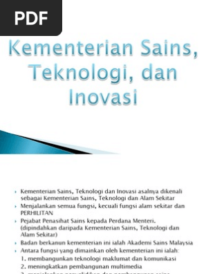 Tugas kementerian sains teknologi dan inovasi. Bahagian teknologi strategik dan aplikasi s t. 603 8888 9070 e mel. Maksud bekalan pembangunan 30 kementerian sains teknologi b p 30 dan inovasi pegawai pengawal. Kini mosti diterajui oleh yb haji khairy bin jamaluddin selaku menteri sains teknologi.
