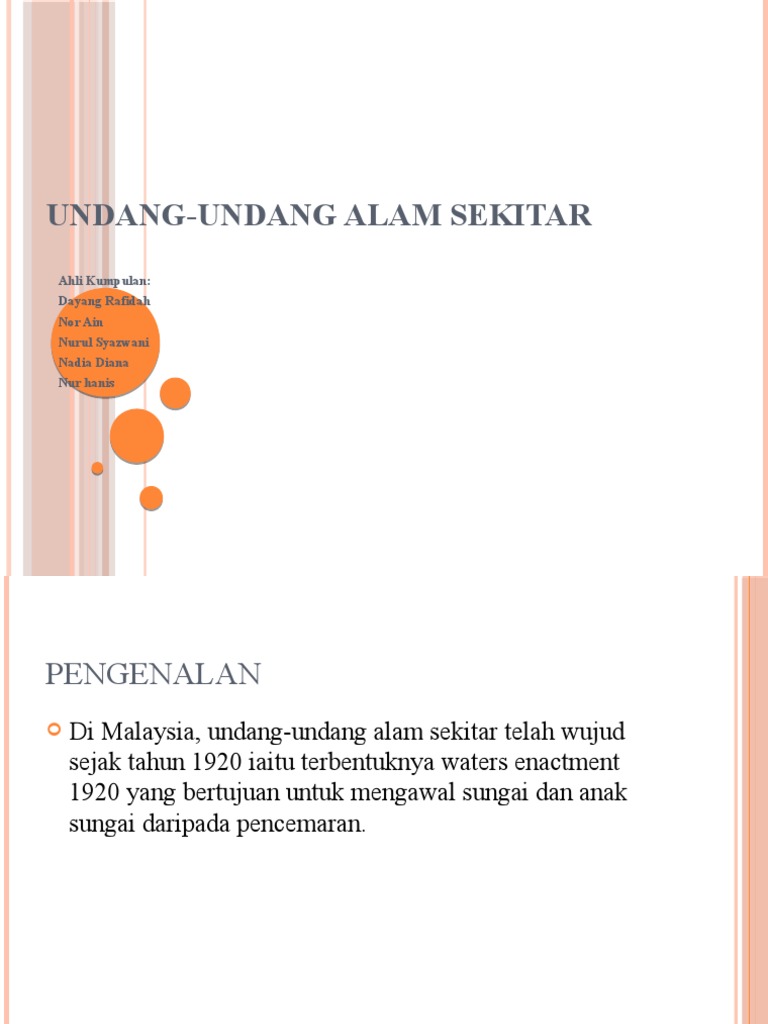Undang undang alam sekitar di malaysia. 15 april 1975 p u. Tujuan penanaman semula sememangnya idea yang baik tapi pembakaran secara terbuka yang dilakukan oleh sesetengah pihak sebenarnya boleh mengakibatkan pencemaran udara dan memusnahkan habitat flora dan fauna. Buku isu dan undang undang alam sekitar di malaysia memberikan gambaran secara umum kepada pembaca mengenai isu alam sekitar dari sudut perundangan khususnya mengenai kawalan pencemaran di bawah undang undang bertulis yang dikuatkuasakan di negara ini. Antara undang undang perlindungan alam sekitar yang paling penting yang perlu digunakan bagi melindungi alam sekitar dalam negara kita serta yang perlu digunakan secara tegas bagi membawa yang pihak pihak didapati bertanggungjawab melakukan sebarang kegiatan yang boleh membawa kepada pencemaran ialah melalui akta kualiti alam sekeliling 1974 akta 127.