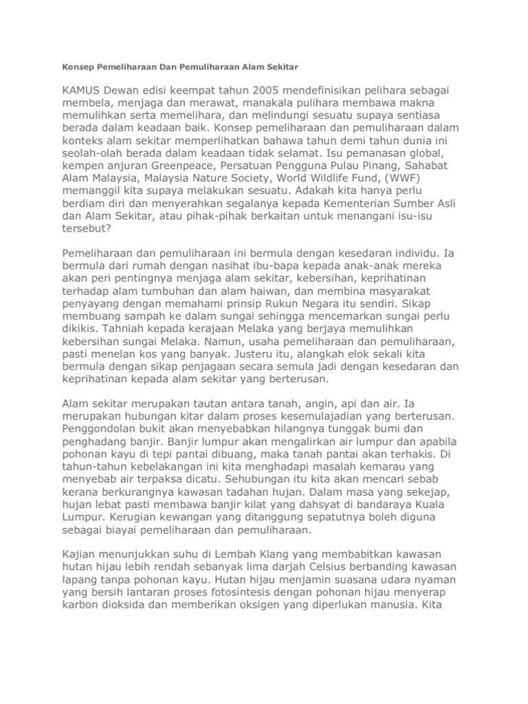 Usaha Pemeliharaan Dan Pemuliharaan Alam Sekitar