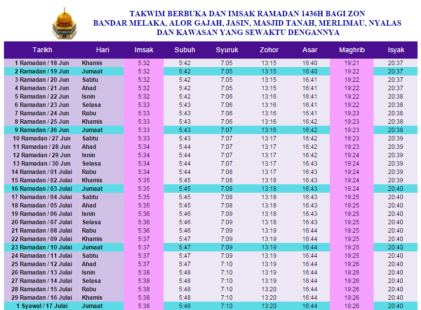 Dapatkan masa doa islam di melaka. Yang saya cantumkan diatas adalah jadwal untuk satu bulan ini anda bisa juga melihat jadwal sholat hari ini. Dapatkan sumber paling boleh dipercayai melaka waktu athan azan dan namaz dengan waktu solat mingguan dan jadual waktu solat mingguan melaka.
