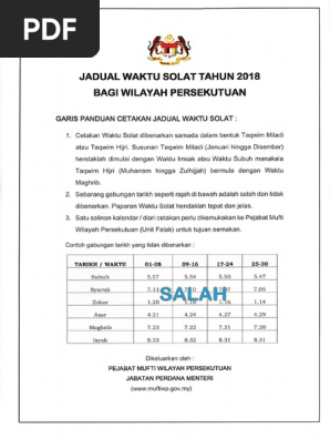 Waktu solat wilayah persekutuan 2018. Wilayah persekutuan jadual waktu berbuka puasa dan imsak 2020 1441h jakim. Solat bagi orang sakit. Cetakan waktu solat dibenarkan sama ada dalam bentuk taqwim miladi atau taqwim hijri. Waktu solat tahunan wilayah persekutuan 2020 1441h 1442h jakim.